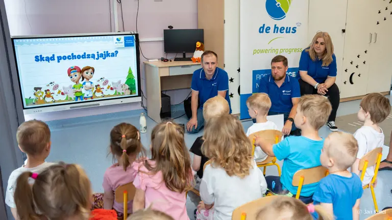 Ale to nie wszystko! Razem z sympatycznymi bohaterami – Anią i Dawidem z De Heus Kids – odwiedzamy przedszkola i szkoły w całej Polsce. Prowadzimy tam ciekawe, pełne zabawy lekcje o pochodzeniu i znaczeniu jajek, mięsa i nabiału w codziennej diecie. Prowadzimy warsztaty, eksperymenty, pogadanki i konkursy.