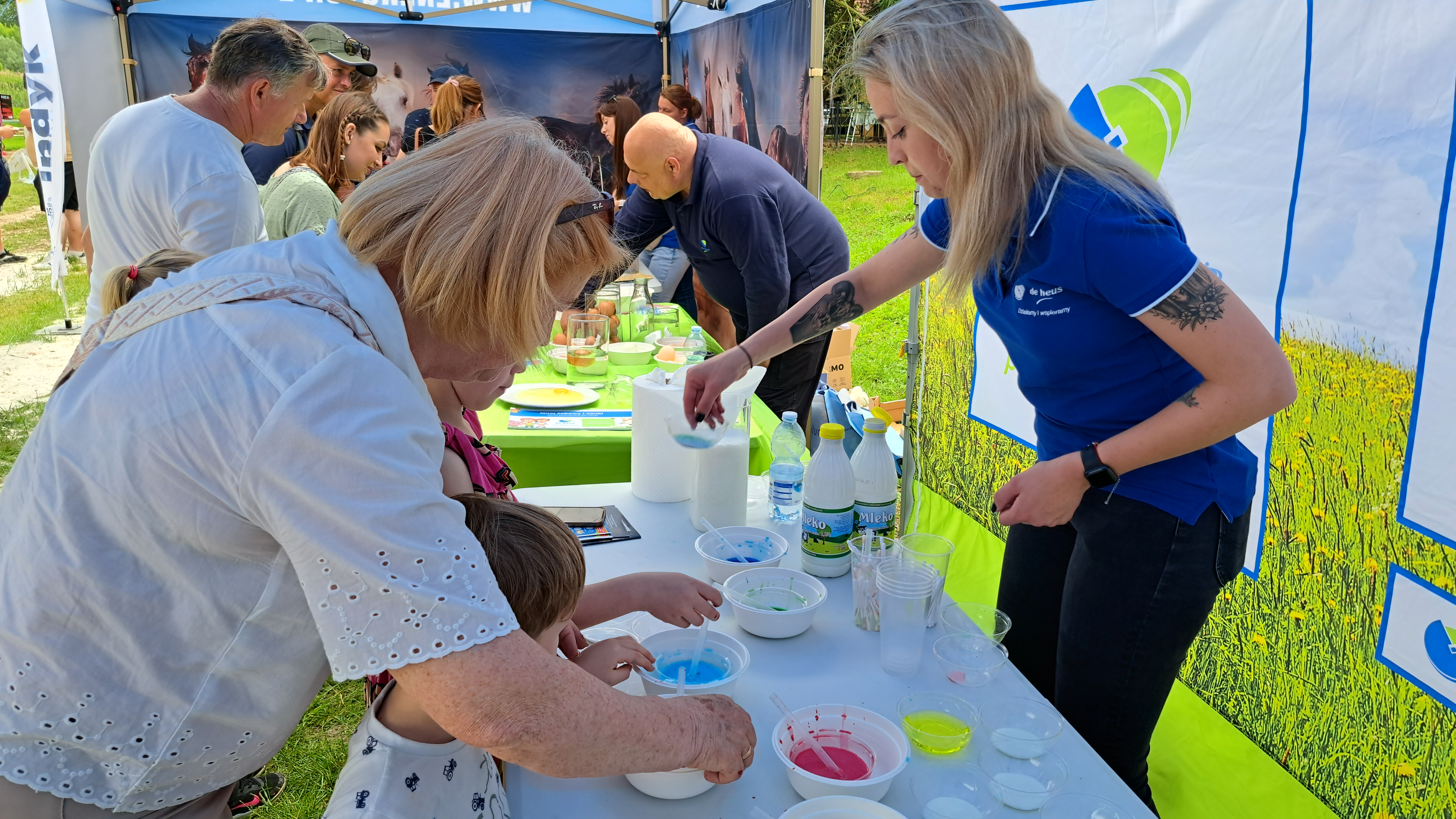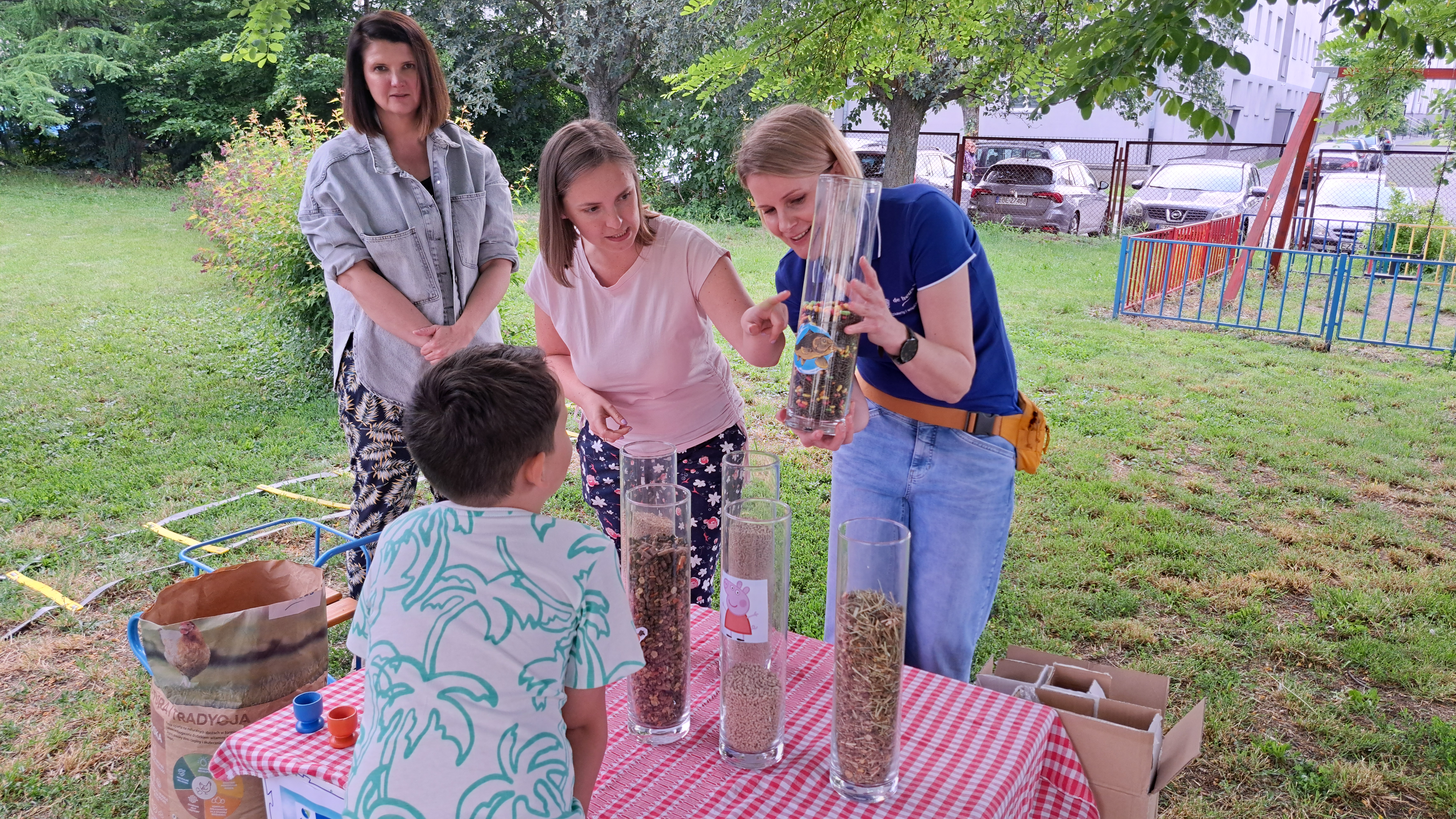 Podczas pikniku rodzice i dzieci ruszyli na trasę pełną stacji zadaniowych. Każda z nich kryła inne wyzwanie – od zagadek z paszą w roli głównej przez piramidę żywienia, sianie ziół w niezwykłych doniczkach z wytłoczek po jajkach aż po… prawdziwe dojenie krowy! Za każde wykonane zadanie drużyny zdobywały punkty. Wynik? Symboliczny – bo najważniejsze było to, że wszyscy wygrali wspólną zabawę i nową wiedzę.