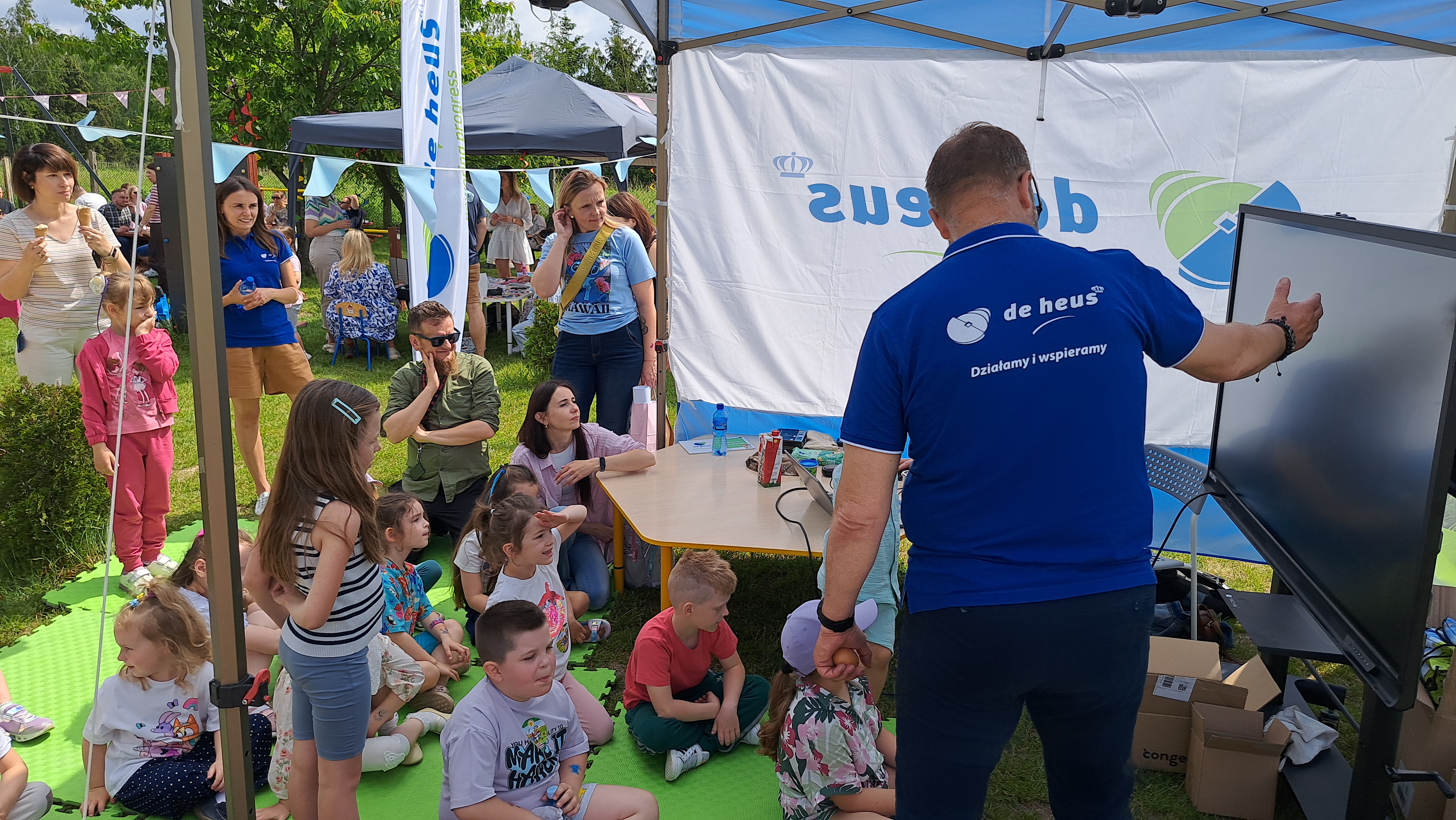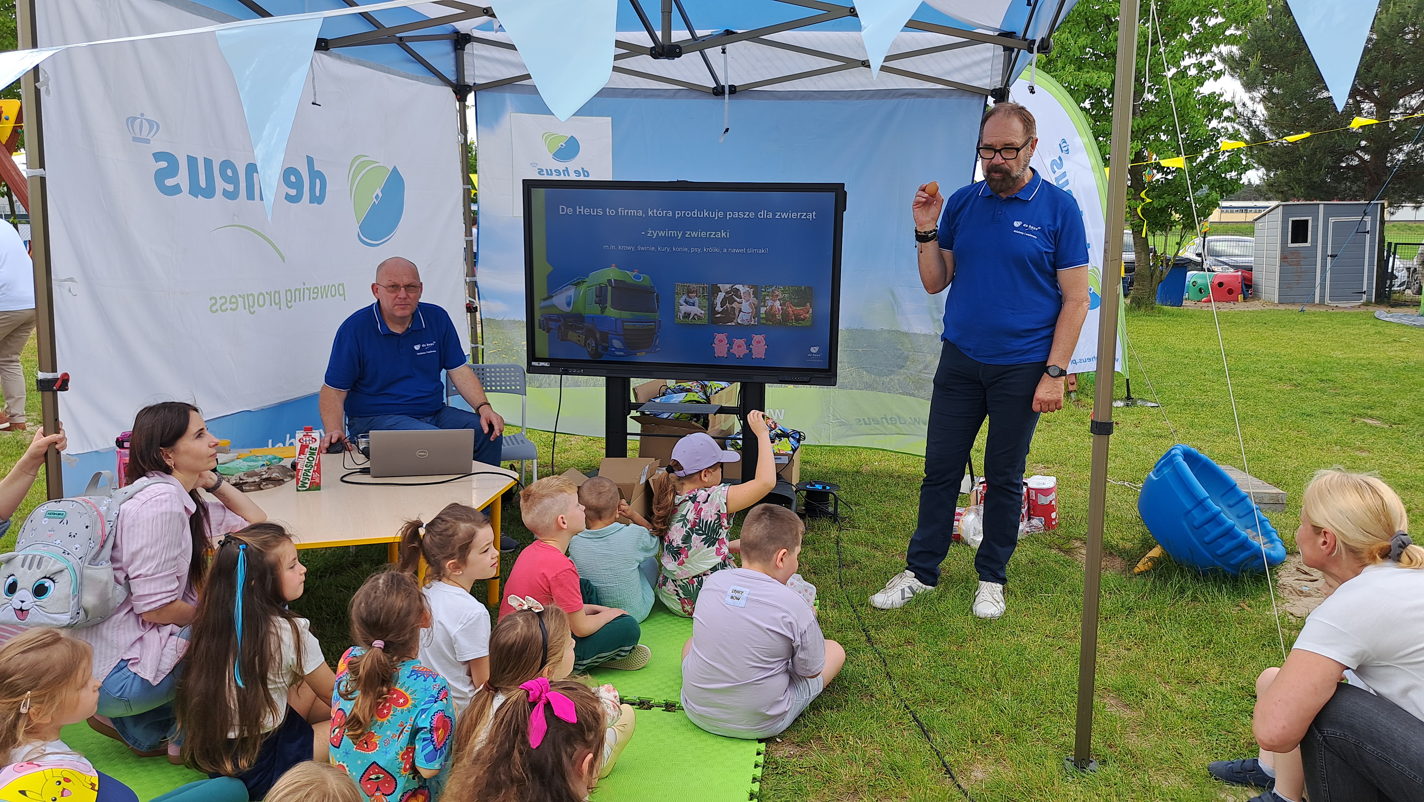 Pierwsze sadzenie warzyw odbyło się podczas wspólnego pikniku, w którym udział wzięli dzieci, rodzice, kadra przedszkola oraz pracownicy De Heus. To właśnie wtedy dzieci rozpoczęły swoją przygodę z ekologiczną uprawą – ucząc się, jak troszczyć się o rośliny i jak zdrowe warzywa trafiają na talerz.