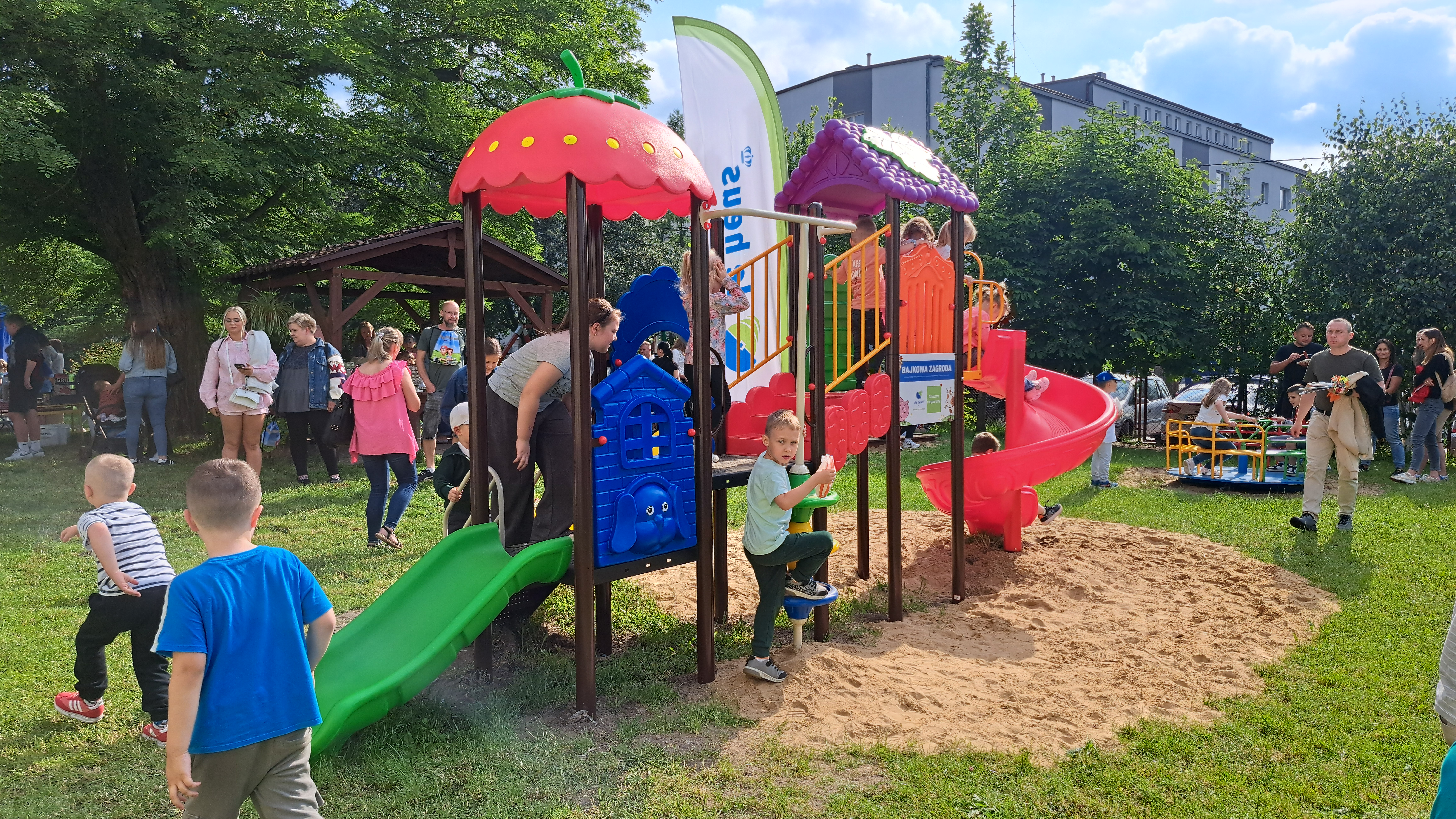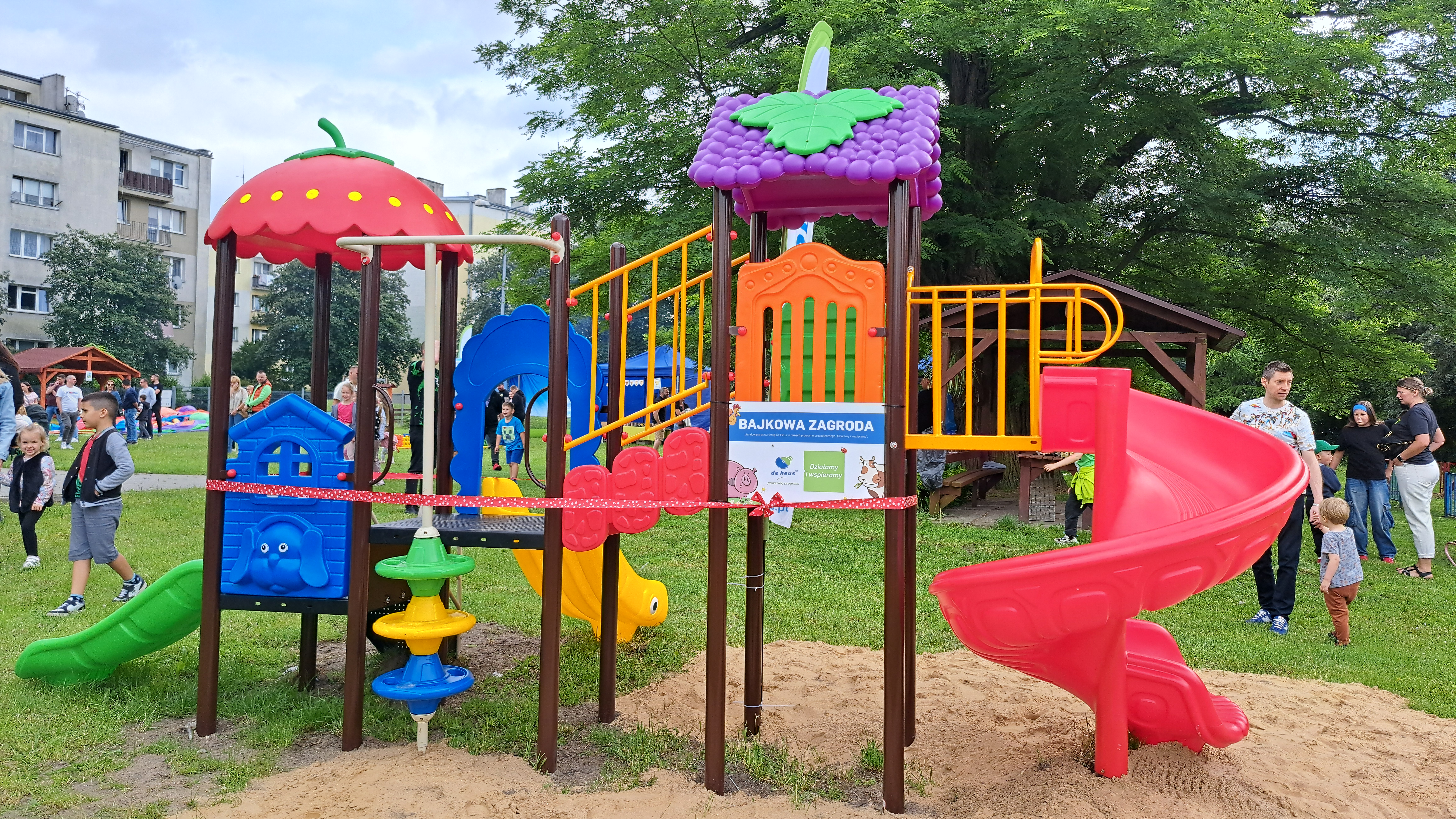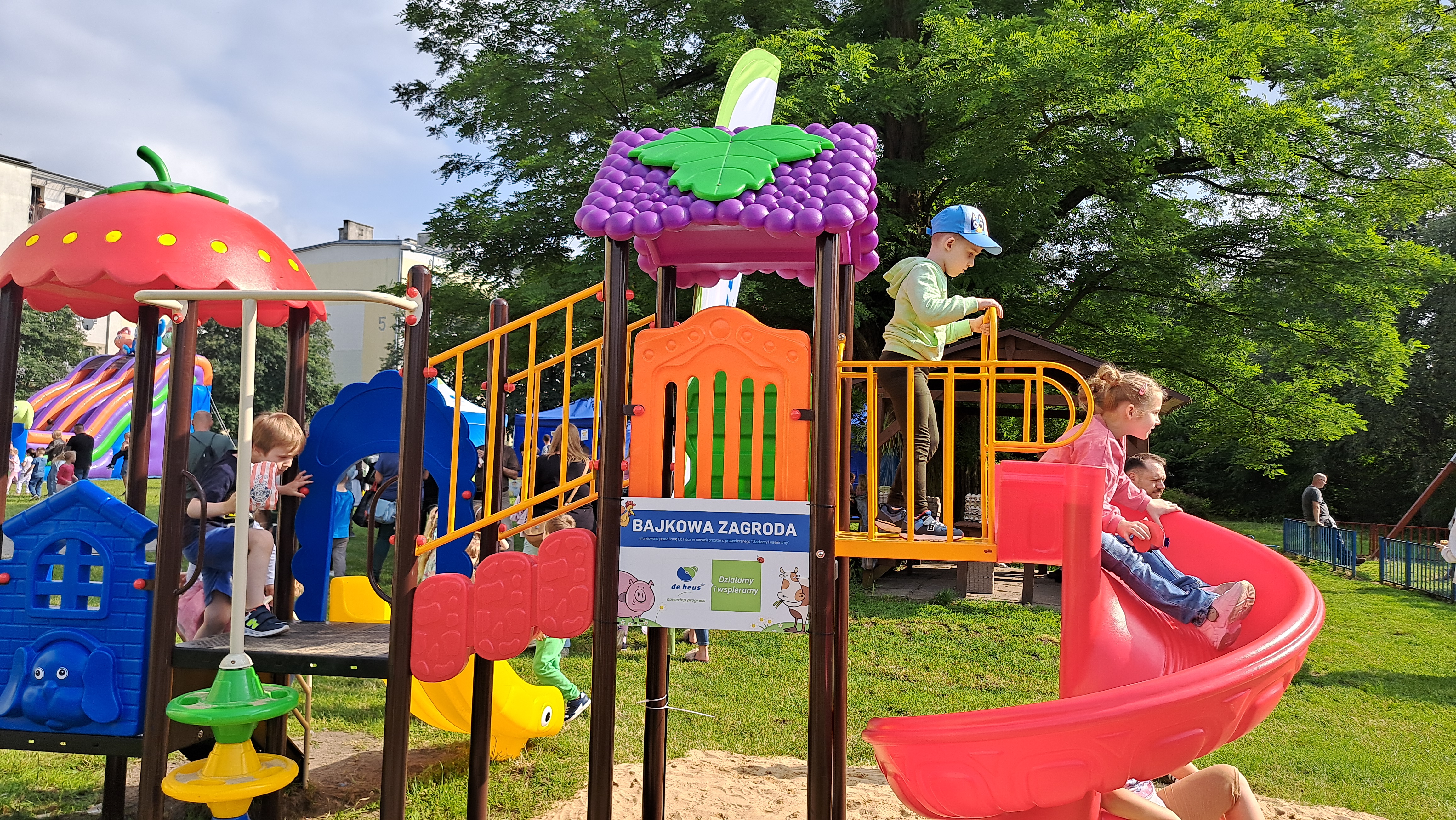 Plac zabaw nazwany Bajkową zagrodą, sfinansowany przez firmę De Heus szybko zyskał uznanie dzieci. Uśmiechy nie schodziły najmłodszych z buziek.