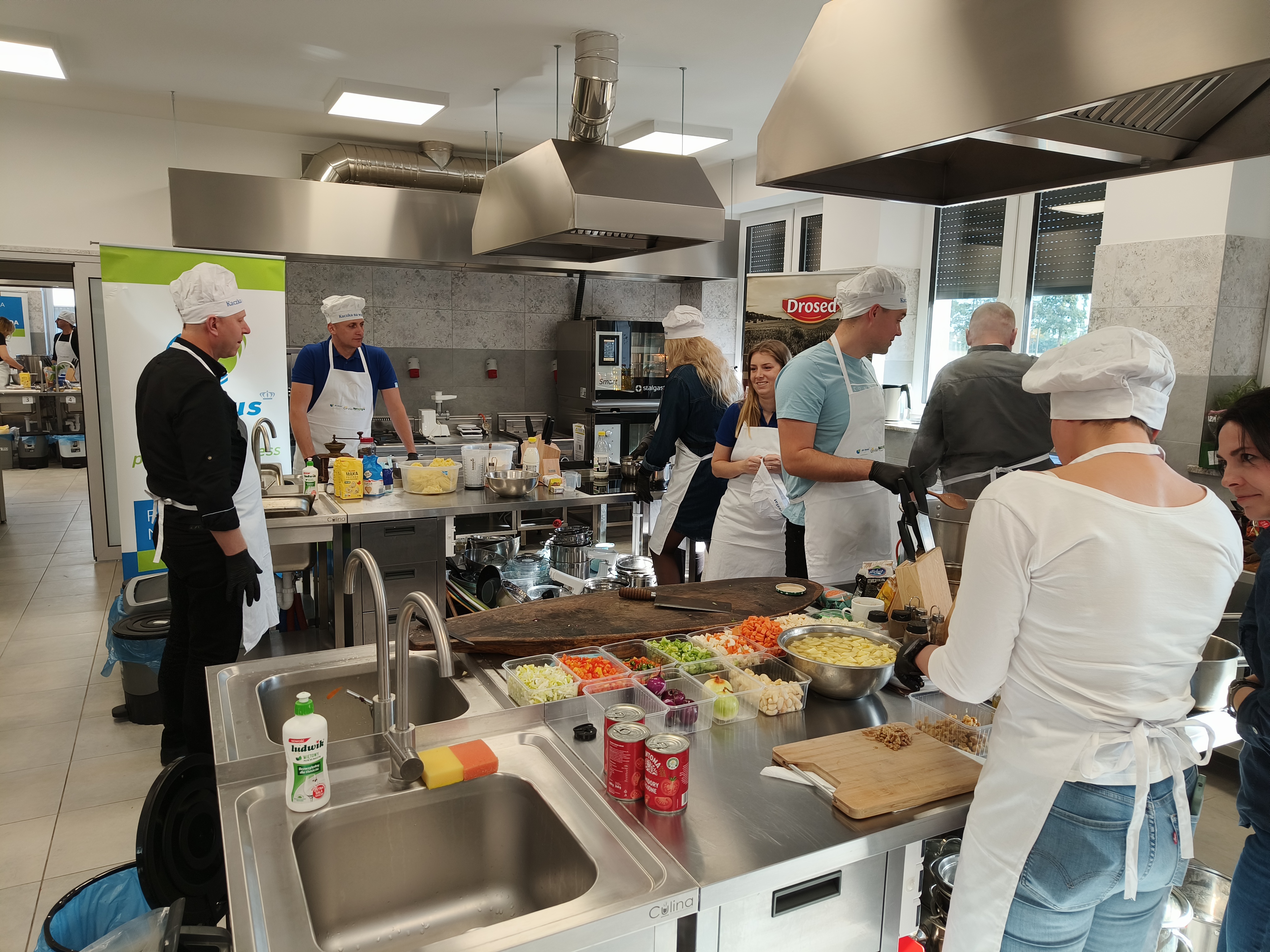 Event odbył się w Zespole Szkół Centrum Kształcenia Rolniczego w Powierciu – szkole otwartej na współpracę i ciekawe inicjatywy. Profesjonalne kuchnie sprawiły, że gotowanie było jeszcze przyjemniejsze, a uczestnicy czuli się jak kucharze w wysokiej klasy restauracjach. Dwa tygodnie wcześniej w tej samej szkole zorganizowano spotkanie dla dzieci w ramach programu „Działamy i wspieramy”. Podczas tego wydarzenia dzieci uczyły się, jak właściwie karmić dzikie kaczki, dowiadując się, jakie produkty są dla nich zdrowe, a jakich lepiej unikać. Przygotowały również zdrowe przekąski dla ptaków.