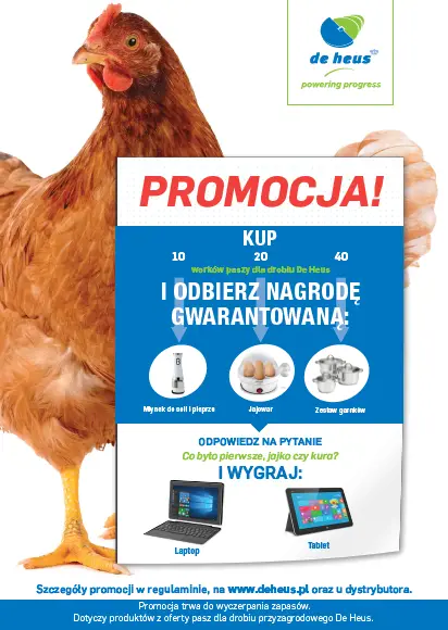 Ponadto, za ciekawą, kreatywną i zaskakującą odpowiedź na pytanie konkursowe „co było pierwsze, jajko czy kura?” można zdobyć dodatkowe nagrody - laptopa lub tablet.