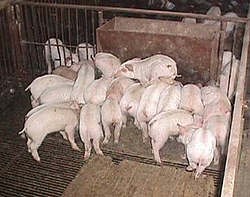 · Odpowiednie rozmieszczenie karmników – nie należy umieszczać ich w zimnych rogach i blisko przeszkód. Powinny znajdować się w miejscu łatwo dostępnym dla pracownika, by mógł je kontrolować. Poidła należy umieścić blisko karmników. Jeśli będą zbyt daleko od siebie – świnie zmarnują paszę. Karmnik musi być zabezpieczony przed zanieczyszczeniami i gryzoniami. Strefy jedzenia, odpoczynku i fekalna powinna być wyraźnie od siebie oddzielone.